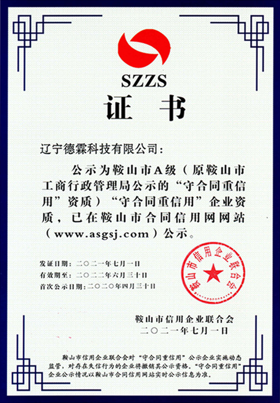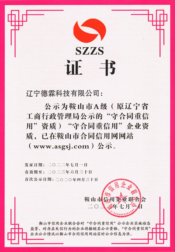 公司取得了鞍山市A級(jí)”守合同重信用“企業(yè)資質(zhì)